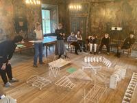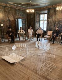 I denne uge besøgte gæstelærer Gonçalo André Pires fra Studio Sotnas Arkitektur 1. Han introducerede workshoppen med en snak om arkitektoniske strukturer, der spænder over store rum. Parvis har eleverne fået tildelt en specifik bygning, der analyseres for at opdage og forstå, hvordan den strukturelt fungerer. De fundne principper skulle derefter oversættes til en ny rumlig struktur, der blev bygget i træ og wire. Disse nye konstruktioner skulle definere store rum i forhold til specifikke rumlige kvaliteter foreslået af de tidligere undersøgelser af struktur. Den nye struktur tegnede eleverne i frihånd med en blå og en rød blyant, der repræsenterer træk- og trykkraft.