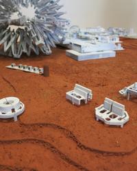 I landskabsbearbejdelser, fremtidsbyer, marsboliger, studier af lys og oplevelser fra missionssimuleringer beskriver de deres visioner for menneskets beboelse af den røde planet.