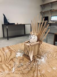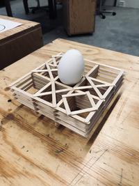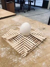 Æg findes som regel i reder, æggebakker og bægre. I en lille kort en-dagsopgave har eleverne på arkitektur skabt nye opholdssteder, “huse” til æg. Konstruktionerne måtte gerne tage udgangspunkt i en velkendt typologi fx podie, en montre, et tårn, et skib, en kasse etc. Eleverne havde kun tynde træ pinde og lim at gøre godt med i opgaven.