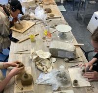 Arkitektur har arbejdet med ler, som man gjorde for 30.000 år siden. Leret har vi selv høstet og forberedt til ugens opgave, hvor vi laver boliger på planeten Arrakis, - en exoplanet forskere har ment er realistisk at finde i vores univers. De færdige emner brændes i en pitfire, som giver leret den karakteristiske overflade.