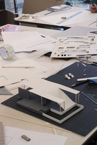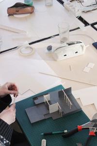 I træpap og træpinde har eleverne fået til opgave at udvikle en ruin til en ny bygning. De har arbejdet med addition, det vil sige, de må ikke fjerne noget fra ruinen men kun tilføje nyt materiale.