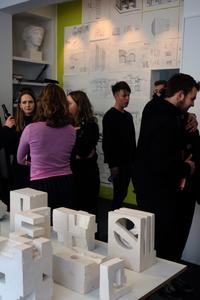 Vi havde i april besøg af gæstelærererne Vitus & Leonora fra KADK. I den stillede opgave skulle eleverne med udgangspunkt i rumlige begreber fotografere arkitektoniske tilstande, som siden skulle udforskes igennem en tekstøvelse. Herefter skulle materialet videreudvikles til arkitektoner støbt i gips som slutteligt skulle afsøge rumlige potentialer. I den efterfølgende uge rykkede arbejdet til København, hvor nye steder, nye fotografier, tekster, støbninger mv. blev tilføjet det foregående arbejde. Det samlede materiale – en omfangsrig fælles process-orienteret rumlig og mixed-media kollage – blev slutteligt udstillet under titlen ‘Sat i Sten’ i Sølvgade, København.