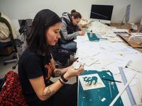 Til at starte med blev eleverne bedt om at tegne fem tegninger, der alle skulle udføres ud fra nogle fastsatte dimensioner. Disse tegninger skulle transformeres til fem snitmodeller i pap, som efterfølgende blev opstillet i forskellige interessante kompositioner – dette blev udført i grupper. Hver gruppe undersøgte dernæst kompositionerne igennem fotografiet, før de udvalgte én komposition. Udfra denne skulle eleverne udvikle et tegnsæt bestående af to opstalter og to snit. Her blev der fokuseret på den præcise tegning og de virkemidler, man kan tilføje for at udtrykke en større forståelse af rummelighed som f.eks. stregtykkelse, skyggelægning og skravering. Til slut tegnede eleverne frie skitser fra forskellige vinkler og med forskellige fokusområder. Ved forløbets afslutning snakkede vi i fælleskab om de forskellige mediers fordele og begrænsninger, hvordan de understøtter hinanden og hvilke virkemidler, man kan anvende for at styrke forståelsen.