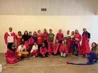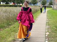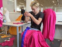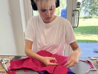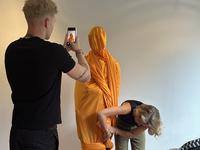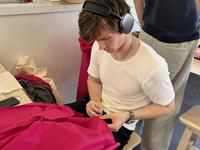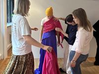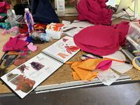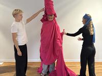 Design har arbejdet med de bløde, tekstile materialer med afsæt i Sheila Hicks’ form og farve-univers. Undervejs har de undersøgt vævede og strikkede materialer, bearbejdet dem og draperet og omsat alle de undersøgelser til et element der kan bæres på kroppen. Opgaven har været at skabe et design der i kraft af farver og former fanger øjet.