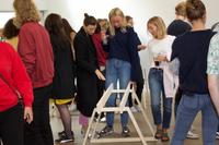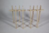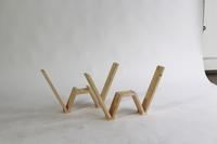 Bordbukke er et undervurderet møbel, så det gør designholdet noget ved. I opstarten blev der registreret alle mulige former for samlinger – i naturen, i tøj osv… til inspiration og som retningsgiver. Derefter stod den på skitsemodeller i skumpap, hvoraf én blev valgt ud til en fuldskala model i fyrretræ. Og det var ikke forbudt at nytænke møbeltypen!