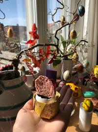 På design på Krabbesholm handler påske om at give. Ligesom det gør i mange kulturer. Dette er særligt en væsentlig tanke i en tid, hvor man kan føle sig isoleret og alene. Her kan vi på andre måder vise, at vi tænker på hinanden. I dagene op til påske blev eleverne derfor bedt om at lave en beholder, der var inspireret af en påsketradition og inspireret af modtageren. I beholderen skulle de lægge noget, som modtageren måske savnede. Endeligt skulle de give beholderen som gave.