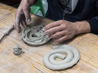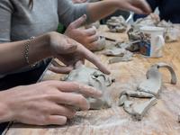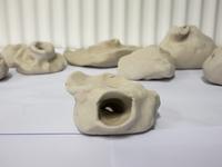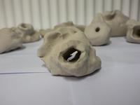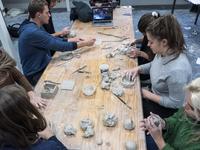 Senere skulle eleverne forme et objekt i ler frit efter et billede af et keramisk, geologisk fragment. De fik kun at vide, at dette fragment var fundet i Krabbesholm Skov. Derefter fik de i grupper tildelt en fiktiv ‘faglighed’ – f.eks. zoolog, sexolog eller geolog med diverse syrede specialer. Opgaven var, at de skulle beskrive objektets funktion, oprindelse og historie ud fra netop dén disciplin. Vi indkaldte derefter til en konference, og de fire forskerteam fremlagde deres teser og udfordrede hinanden og historien blev opfundet på ny.