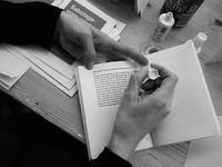 Samtidig holdt vi pre-release på den nye bog i Schadeserien – Ida Börjels “Sabotagemanualerne”, som udkommer d. 24. maj. Et samarbejde med forlaget Antipyrine. Eleverne på litteratur har skrevet en kollektiv tekst, som bliver publiceret i bogen, mens eleverne på grafisk design har stået for tilrettelæggelsen.
