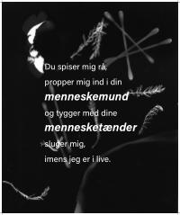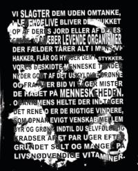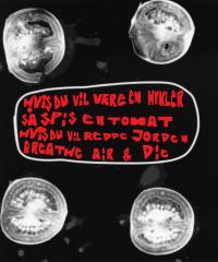 Et beskedent forslag: Vegempati er titlen på en tekst, hvor Ursula K. Le Guin radikalt forholder sig til menneskehedens kostvaner. “Tiden er inde til at menneskeheden hæver sig op af vores primitive tilstand som altædere, kødædere, vegetarer og veganere. Vi må tage det uundgåelige næste skridt til Oganismen – Luftædernes liv – der fører bort fra fedme, allergi og grusomhed mod sagesløs renhed. Vores motto skal være All we need is O.” Ursula K. Le Guins tekst har dannet grundlag for analoge eksperimenter i mørkekammeret. Således er grafikken på plakaterne originale fotogrammer. Teksten er også blevet fortolket og diskuteret. Plakaterne er det samlede resultat af den bearbejdning. Opgaven gav anledning til at diskutere vores forhold til mad, men også til at forholde sig kritisk til og øve sig i brug af typografi og komposition.