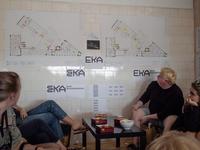 Kontakten til Ott Kagovere og Ranno Ait, der begge har tilknytning til afdelingen for grafisk design på EKA i Tallinn, gjorde studieturen dette semester til en helt særlig oplevelse. Resultatet var en tur der kulminerede med vores deltagelse i EKAs afslutningsudstilling og fest. Vi fik på den måde et unikt indblik i, hvordan kulturen rundt om grafisk design i Estland udspiller sig. Ugen igennem besøgte vi grafiske designere, der på forskellige måder repræsenterede dette miljø: Lugemik Studio og Lugemik Bookshop, Brit Pavelson, Saaldisain, Stuudio Stuudio. Vi besøgte også Tallins arkitektur- og kunstmuseer. Hotellet vi boede på var bygget til OL i Moskva i 1980 og var en oplevelse i sig selv. Vi siger tak til vores guider og til vores elever for en mindeværdig tur.