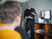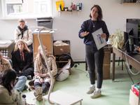 Grafisk design har i mange år haft en tradition for at sende studerende til Gerrit Rietveld Academie i Amsterdam. Samtidig med at vi faciliterer optagelsesprøver til de danske designuddannelser, holder vi døren åben for en alternativ scene for grafisk design, hvor det er muligt at studere faget indenfor rammerne af et kunstakademi. På den måde forsøger vi at åbne perspektivet for, hvordan grafisk design også kan være. Derfor er en studietur til Amsterdam ikke tilfældigt valgt, men derimod et glædeligt gensyn med et stort netværk af tidligere elever og andre bekendte, der er kommet til i årenes løb. Både dem, der stadig går på Rietveld og dem der i dag bor og arbejder i Amsterdam. Hvad enten man allerede er optaget på en dansk designskole eller man stadig ikke er helt sikker på, hvad man skal vælge, mener vi at det er væsentligt at vide, at der findes alternative perspektiver på, hvordan en uddannelse til grafisk designer kan se ud. Vi siger tak for en god og travl uge i Amsterdam til vores to værter og tidligere Krabbesholmere Claes Storm og Mark Emil Poulsen