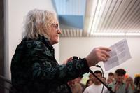 For mig er du et slægtskab, vi selv har fundet på. Et slægtskab, der også rummer mange andre. Vi har været med i en sammenhæng sammen i mange år. En sammenhæng, der når ud over os selv. Den betydning du har haft for den virkelighed, der er vores – for Krabbesholm er ekstremt stor. Og det kulminerer så i dag med en fernisering her i FourBoxes. Med din ophængning af malerier.