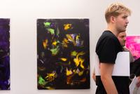 Du beskriver i den tekst, der ledsager udstillingen det at male som et fast arbejde. Rutinepræget og frusterende. Men på en anden side også som en rammesættende og strukturerende livsform, hvor det at checke telefonen, tage en kop kaffe og skrive en indkøbsseddel spiller en rolle for tilblivelsen af maleriet. Når man siger maleri, betegner det både resultat og proces. At se malerierne som en forlængelse af levet liv må være ok så. Nogle af malerierne hænger her i dag. Processen fortsætter.