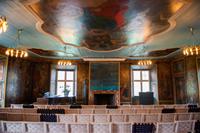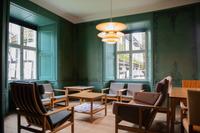 The main building was built in 1565 by Magdalene Banner, who named the estate after her late husband Ivar Krabbe. The estate’s interior appearance derives primarily from restorations in the 18th century. In the main building you will find the knight’s hall, the library, the principal’s office, and the meeting room Rokokostuen. It is in the knight’s hall that we meet for morning assembly and lectures. The knight’s hall is surrounded by elegant rococo ceiling and wall paintings by Olaus Carolus Wassmann (1730-84). They reproduce i.a. scenes from Greek mythology with Zeus, Hades and Rhea.