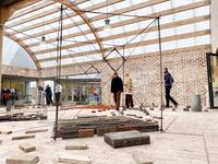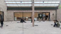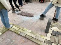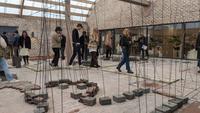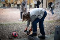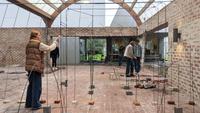 Mia Fryk held a workshop for the Architecture Class about sketching spatial fragments in full scale. The yard in front of the architecture department were during the week gradually filled with all sorts of “lines” made with round steel, chalk and bricks. The sketches were spatial fragments ending up in perhaps a sort of garden, a maze, an installation or …?