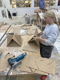 In a one-week workshop with Gonçalo André Pires from Studio Sotnas, the students at Architecture explored spaces for specific sonorities. Particular properties affecting sound structures and its expressions were developed as criteria to define spatial dimensions. The structure is regulated by one specific material: mdf and a structural subject: slab.
