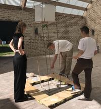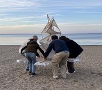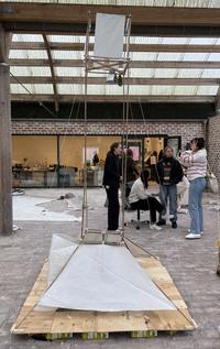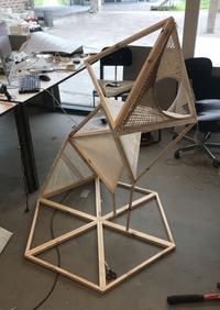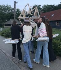 The architecture students had been given the task of investigating how to work vertically with constructions, which eventually unite into one floating tower as large 1:1 lanterns.