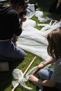 This week we collaborated with Space Girls and worked on reinterpreting the tent as an architectural structure and social gathering point. Hoping to develop a very special way to “camp” on Krabbesholm, the students have worked with the concept of “camp”; a contradictory aesthetic that mixes high and low culture, craftsmanship and mass production, good and bad taste.