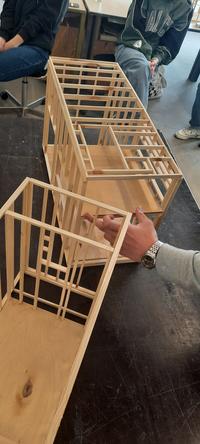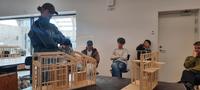 Architecture has been visited by in-house craftsman Thomas Christensen, who gave the students an insight into the construction of a tiny house. Through a research phase, students had to find their own ideal tiny homes – based on the size of a 20-foot container. Then they had to build the wood skeleton for their home and aim to direct the forces to the right places.
