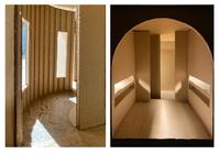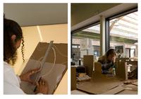 Each student was assigned two arbitrary spatial functions with different openings. Subsequently, they were asked to draw a floor plan that connects these openings—a transition space between two imaginary rooms. They had to consider what their transition contains, whether it has specific functions, and what qualities it offers to the adjoining rooms. As sketched and drawn, their final plan was then translated into a physical model at a scale of 1:10, built in corrugated cardboard. Students were only allowed to use cardboard, glue, and white markers for the model.