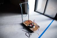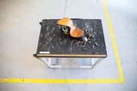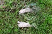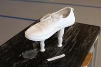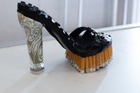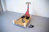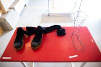 The students in Design at Krabbesholm Højskole were asked, by guest teacher Anne Reimen, to consider the shoe. They were given a saying involving the foot and were asked to create a response using used or sustainable materials.