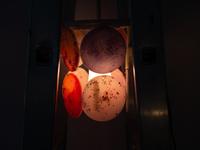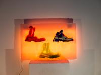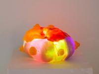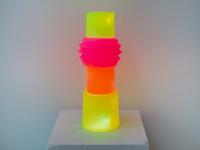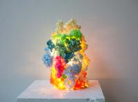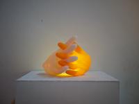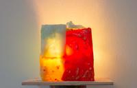 The castings are made in colour-infused paraffin wax. The wax has a transparency that can be adjusted by the thickness of the material, producing a beautiful variety of light and colour intensity.