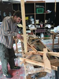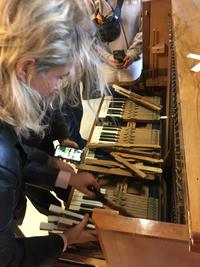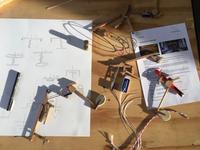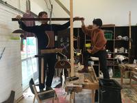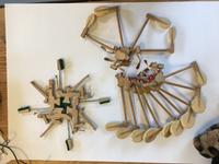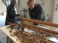 The students designed a number of expressive mobiles, using only parts from the piano. Components being embellished brass pedals, fine felt-covered hammers, delicate strings as well as coarsely cut wooden panels etc. A true cornucopia of very specialised and particular components and forms to be balanced, visually as well as by weight.