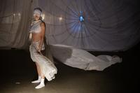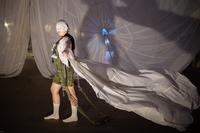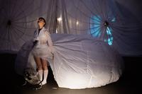 In a assignment in the sewing workshop with guest teacher Anders Andersen, some of our students have transformed parachutes into outfits to be used during a performance at our joint exhibition at Godsbanen last week. In the process, the students had to sew parachutes into outfits with the premise that the material should interact with the wind from wind turbines.