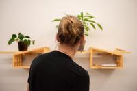 Plants in our homes add great quality when it comes to both climate and wellbeing. Plants need to be nurtured and taken care of, in return they connect us with nature and provide the sense of blooming growth. Having plants in pots is one way of keeping them. Here we work with a piece of furniture where more plants can stand and form at composition.The furniture is made out of fir, of which each student have been given a specific amount, that is to be given form to become a plant stand using the zero waste principles. The surface can be either stained with natural stains or use the Japanese method Shou Sugi Ban, by burning the surface of the wood. The stands were presenting themselves very well with plants in FourBoxes Gallery