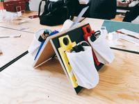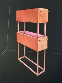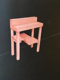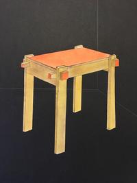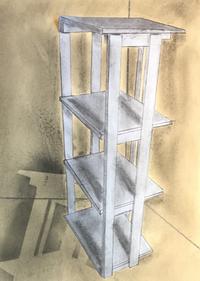 To design a storage unit to be used in the studio or in the living quarters of the school was the first assignment of the year in the model workshop. The use of color was a crucial part, - to give identity and to make best use of the given materials being sheets of MDF and wooden sticks. The last part of the project was to work with handcoloured chalk toned drawings, - another kind of skill.