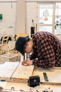 The design class has spent a week making a chair from an already existing type of chair called “Sedia 1”. Sedia 1 is designet in 1973 by the Italian designer Enzo Mari, exemplifying the concept of “Autoprogettazione” - which may be be translated into “self-produced”. It is part of a movement, that holds a critical eye towards consumer culture and wishes to give the user the power to make – in this case – their own chair. As such these chairs become current examples of this model, presenting them with great variety and personality.