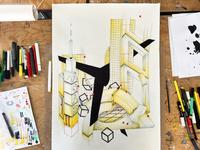 Expressing oneself analogically on white paper is like standing alone in a room. Exploring drawing as an artistic medium and expression is interesting, and the central question is: How can analog, hands-on techniques still be developed, challenged, and justified in a time with many new digital tools?