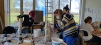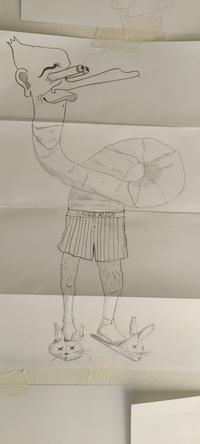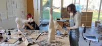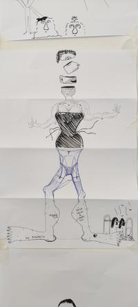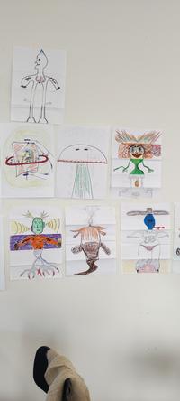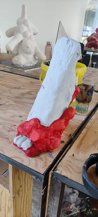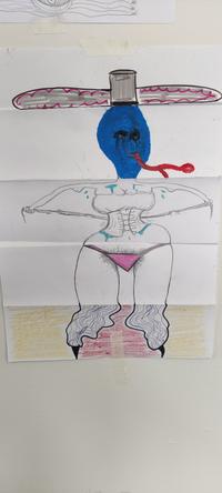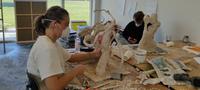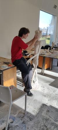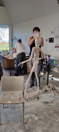 After playing the surrealists’ play exquisite corpse – an exercise in relying on instincts, drawing out there and giving up ownership of a drawing – the students have chosen a part of the drawing that they want to model up with plaster and herewith tried turning 2D into 3D.