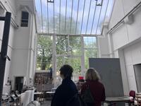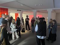 During the daytime, we explored Berlin‘s museums, galleries, artist studios, art schools, and street life. At Kunst-Werke, we saw the contemporary political exhibition 'Poetics of Encryption,’ which reflects the current issues surrounding AI and digital tools. This year, the students at Krabbesholm have also worked extensively with AI and digital image generation. At the Neue National Gallery, we experienced the art-historical exhibition ‘Zerreißprobe’ about art between politics and society. We participated in Alexandra Pirici’s performance at the Hamburger Bahnhof and much more.