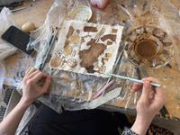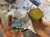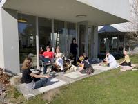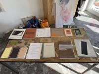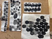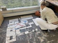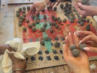The students were equipped with potatoes and carrots. Created seed bombs that were left to dry, went for walks around the buildings to understand the sizes of the floor plans, created works of repetitive prints and colors with a meditative touch. All to develop the language and relationship to surface, form, space and action also in relation to new ecologies.