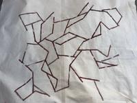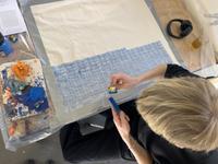 Jesper Dyrehauge’s own fine starting point for the week was: We are in land scapes, urban scapes and non scapes. We establish connections and touch with our surroundings and our time. We motivate a basic mood for the week that goes from grounding to abstraction. We work with potato and carrot prints with acrylic paint on cotton canvas. The task is to work non-figuratively, abstractly. We give ourselves time to talk, listen, think and consider our compositions before we start working with carrots, potatoes, paint and canvas.