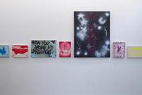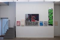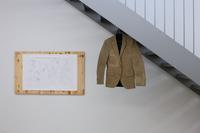 The exhibition consists of a collective work on the ground floor and a student-curated presentation on the second floor of 18 individual works, spanning a wide range: from sand painted onto a blazer and debarked, constructed wood to cowhide with human blood, urine, and body fat on a copper plate.