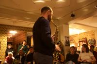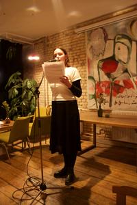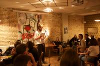 After a nice meal the students performed at Den Sorte Firkant together with the poet Glenn Christian and the saxophonist Johs Lund from the record company yoyooyoy.