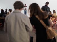 Therefore, literature had an exhibition together with the rest of the students at Krabbesholm Højskole in Den Rå Hall at Godsbanen in Aarhus on Thursday May 16th. The students had made various text-based works under the title “Bring it back, ring it back, sing it back”. Here we exhibited books and videos that the students had made. There were also readings and performances of the students’ works.