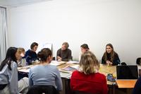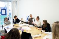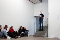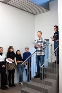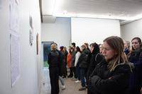 The literature students have worked with self-portraits. First, the students wrote a self-portrait inspired by the writer and artist Édouard Levé. Subsequently, the students worked with different methods to describe themselves. The student’s self-portraits ended up in a lot of different ways and amongst the final products there where a mirror decorated with the results from personality tests, a framed text from a diary and a comic strip about a pair of tight jeans. The texts and the final results were exhibited in the gallery Four Boxes where the students also read their works aloud.