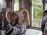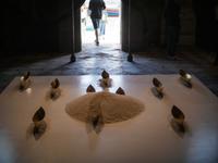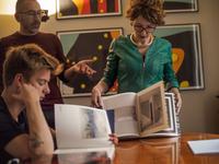 Art is an important focal point for Krabbesholm Højskole. Although graphic design is an independent subject, the fall study trip to Venice is an important upgrade of aesthetic experience. Every two years an art biennial fills the city, which is almost transformed into one large exhibition. There is so much to look at and you can be absolutely sure to be completely saturated with impressions. Venice is also a backdrop for an extreme tourism that can both be considered and criticised when a cruise ship suddenly blocks the the entire view a the horizon. It is also a city where climate change manifests itself concretely in the form of rising water. This is also reflected in several of the exhibitions that are part of the biennial. As a nice last stop on our trip, we also got an elegant insight into how graphic design is practiced in a venetian way. We visited Tomotot, who works mainly doing book projectsvwith cultural clients in Venice.