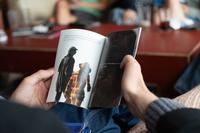Ursula LeGuin’s The Wife’s Story is written as an oral, first-person narrative, in which the main character – who eventually turns out to be a wolf (perhaps) - describes her beloved husband and their seemingly idyllic family life. The story takes place in the past tense, except at new moons, when the husband mysteriously disappears. One night she experiences with horror his transformation into a human. This triggers a hunt, in which the family and neighbors finally kill him. The students in visual communication have rewritten the story, illustrated and designed small books, which we have printed, folded, stapled and trimmed. In this way, they have created visual interpretations that highlight the deeper layers of the work and at the same time offer personal interpretations of LeGuin’s text. The project concluded with the students reading their books aloud to each other.