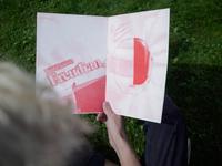 These zines are supposed to reflect something fundamentally important to the students, demonstrate that graphic design can be a concrete expression of an idea. A zine is graphic design with a personal starting point. It can be distributed to friends and acquaintances in order to spread a message. The zines are printed on our RisoA2 in a ten volume cirkulation in optional colours. We chose to show the zines in our Dan Graham pavilion.