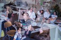 We have been on a lovely study trip to Berlin. Our focus has been to visit some agencies that deal with graphic design and visual communication. That is why we have allied ourselves with our good friends from Formal Settings, who have used their network to get us access to visits and presentations at Basics09, Studio Pandan, Dan Solbach and Studio Bank. We got an insight into different design processes and considerations about their different tasks and projects. There was time for questions and a good dialogue. Because what does it actually mean to work with visual communication? The question is best answered with an insight into how it goes in practice. So thanks to everyone who shared their experience. In between the study visits, we went to some nice and relevant exhibitions. Thanks to everyone for a good trip and to Per Andersen for the special documentation.
