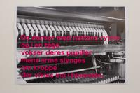 The students from Visual Communication have created site-specific posters. The posters all take their starting point from a specific location, which the students were asked to investigate using an anthropological approach and then through the camera lens. The challenge was that the photos forming the basis of the poster had to be taken analogously and that both film and photographs had to be developed in the darkroom. They were then finally scanned and printed on a large-format printer. The texts are written based on the anthropological research that formed the beginning of the project.