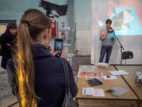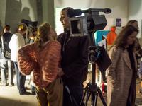 “A set within a set within as a site for an exhibition.” The students from Krabbesholm Højskole are inviting to an exhibition that is also a filmset. Or a filmset that is also an exhibition? In a big multi-media installation the borders between art and prop are blury, the difference between set and backstage not existent.