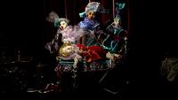 In the exhibition we also find Gonzan (2024), a series of large scale ceramic sculptures portraying two baby parrots, a ceramic rendering of a Fabergé egg containing a stage, a pair of richly ornamented sunglasses and large scale jewelry. In a two-chanel video, we hear a 3d-animation of the parrot Gonzan sing the story of his upbringing, soon coming to a realization of his position in the world of humans. Alongside these large installation, Åslund presents a new work, continuing the exploration of the medium of puppet theatre opera, this time putting the spotlight on theatre itself.