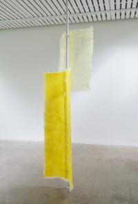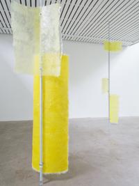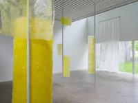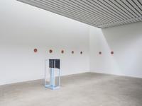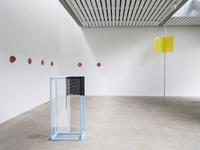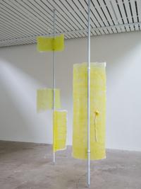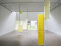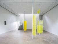This is the first time that Cecilie Skov and Aia Sofia Coverley Turan are exhibiting together. It is with great formalistic contrast, that with each of their works they fill the two floors of the concrete box Four Boxes, and through a sensitive connection that the two visual artistic practices have found a kinship. As the title Valmue Valentino (Poppy Valentino) implies, there is a shaky and fragile but still strongly composed dynamic at stake.