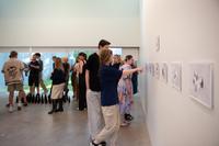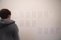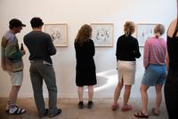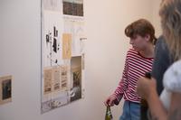 the lines between matter seeks to address certain aspects of the socially-oriented criticism articulated by figures such as Bruno Latour, Douglas Rushkoff, and the writer collective, the Invisible Committee. The exhibition can be seen as an unfolded and fragmented book: Opened pages, torn-out chapters, and drawings reflect in various ways, through their internal relationships, on current and partly neglected societal and contemporary challenges such as adaptability and class blindness.