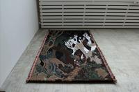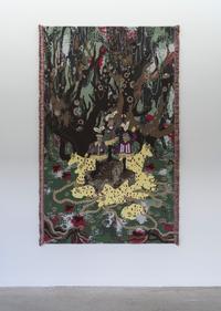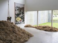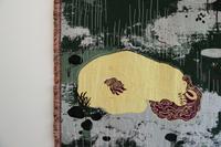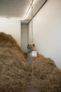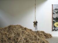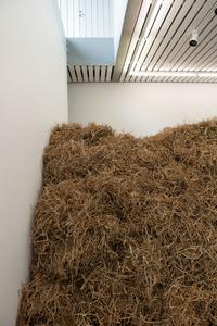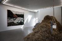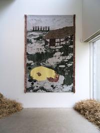The works in the exhibition draw threads from the historical tapestry series La Chasse à la licorne from the 16th century, which depicts mystical medieval fantasies about unicorn hunting. The symbolic meaning of the unicorn is far-reaching. In the unicorn hunt, it has historically represented the human desire to own, categorize and exploit. It symbolizes the magical, the foreign, the uncontrollable, the wild and the free – and is today seen, for example, as a favorite queer symbol in internet cultures. Where La Chasse á la Licorne celebrates the hunt for the unicorn as a triumph, Rode Hvass questions the messages of hijacking and power as success, and explores the violence that is in the tales of unicorn hunting. In the weavings, the landscapes are abandoned, the rich hunting grounds are strewn with withered hay, and the mythical unicorn has changed form into an earthy horse without horns.